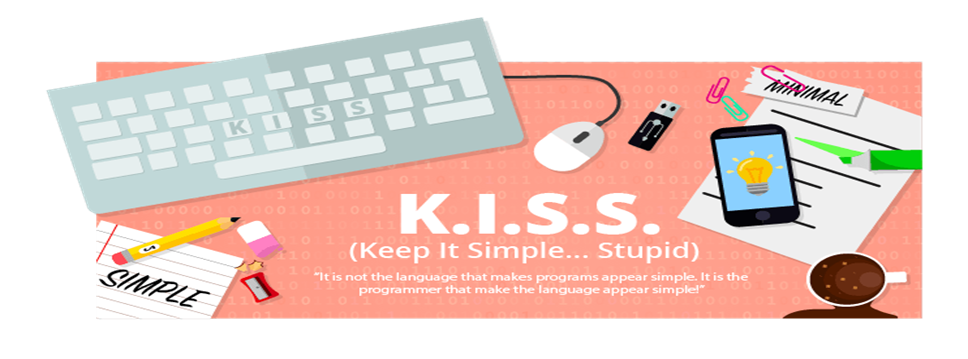 Ushbu atama foydalanuvchi interfeysini ishlab chiquvchi dizaynerlar, mahsulot dizaynini ishlab chiquvchilar va dasturiy taʻminotni loyihalashtiruvchilar tomonidan keng foydalaniladi. Sababi bu atama ishlayotgan sohangizda murakkab usullardan qochib, mumkin qadar soddalikdan foydalanish kerak ekanligini anglatadi. K.I.S.S – siz ishlayotgan sohada (qanday soha boʻlishidan qat’iy nazar) barcha muammolarni eng sodda va barchaga tushunarli yoʻl bilan hal qilish kerakligini anglatuvchi qoidadir. Keling atama haqida yaxshiroq tushunchaga ega boʻlish uchun kichik bir holatni tasavvur qilib koʻramiz. Faraz qiling, sizda ikki yoʻl mavjud: birinchi yoʻl sizni manzilingizga yetguningizga qadar qorongʻu va qoʻrqinchli oʻrmonda yashaydigan “bug” deb ataladigan qonxoʻr maxluqlar makonidan, yalmogʻiz kampirning uyi va uch boshli ajdar yashaydigan gʻorning oldidan oʻtishni taqozo qiladi. Ikkinchi yoʻldan esa tep – tekis, yangi asfalt qilingan yoʻldan yurib manzilga yetasiz. Xoʻsh qaysi yoʻlni tanlardingiz ?! Albatta tep – tekis yoʻldan yurish har doim yoqimliroq, shunday emasmi ?!