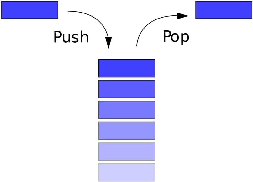 Push() – Stackga yangi element qo’shadi. Element Stackga eng yuqorisidan qo’shiladi (huddi quyidagi rasmdagidek);