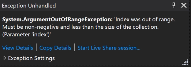 Quydagi holatda esa hatolikka uchraydi, chunki 10-index mavjud emas