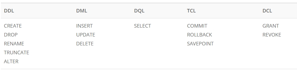 SQL turli imkoniyatlarni ta'minlaydigan ko'plab pastki tillardan iborat. SQL ning pastki tillari tomonidan taqdim etiladigan imkoniyatlar - bu yaratish, ma'lumotlarni manipulyatsiya qilish, so'rovlar va ularni boshqarish