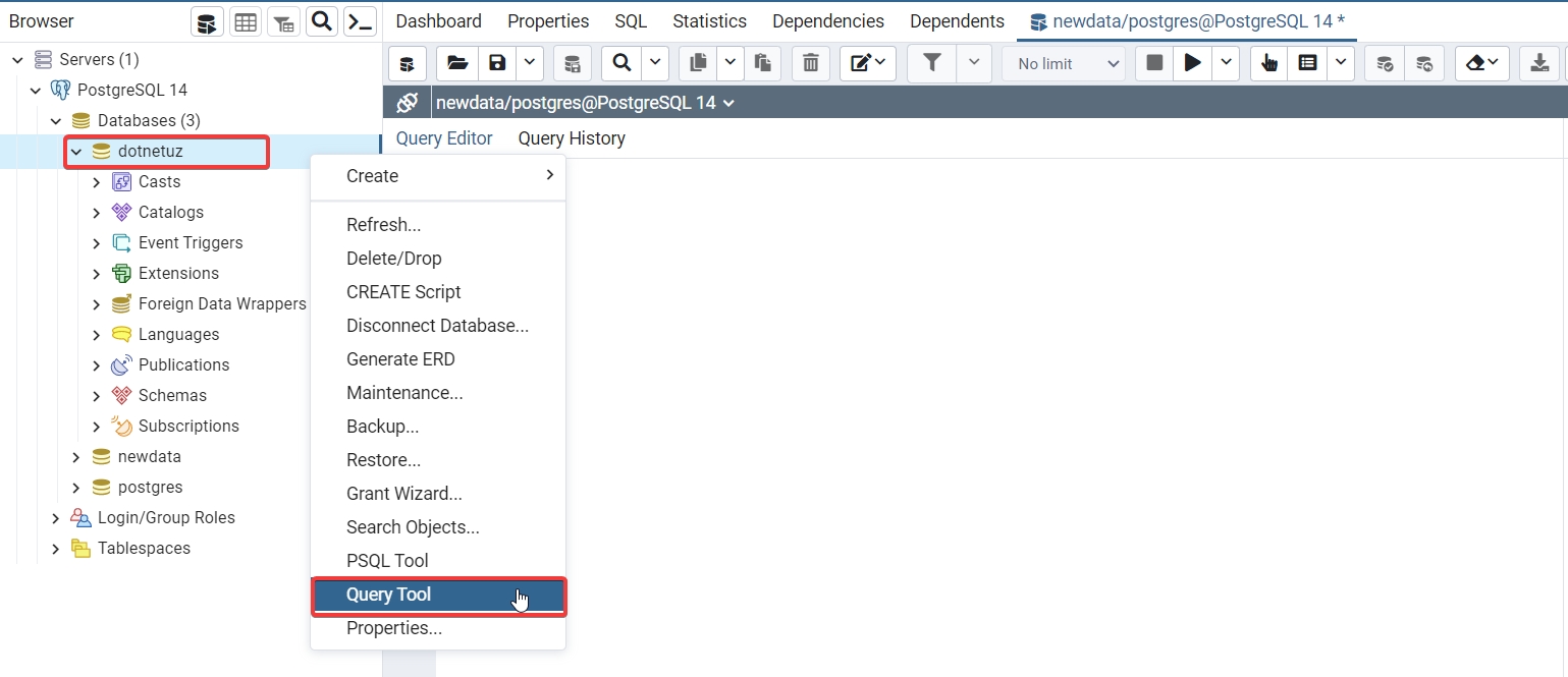postgres=# \c dotnetuz
