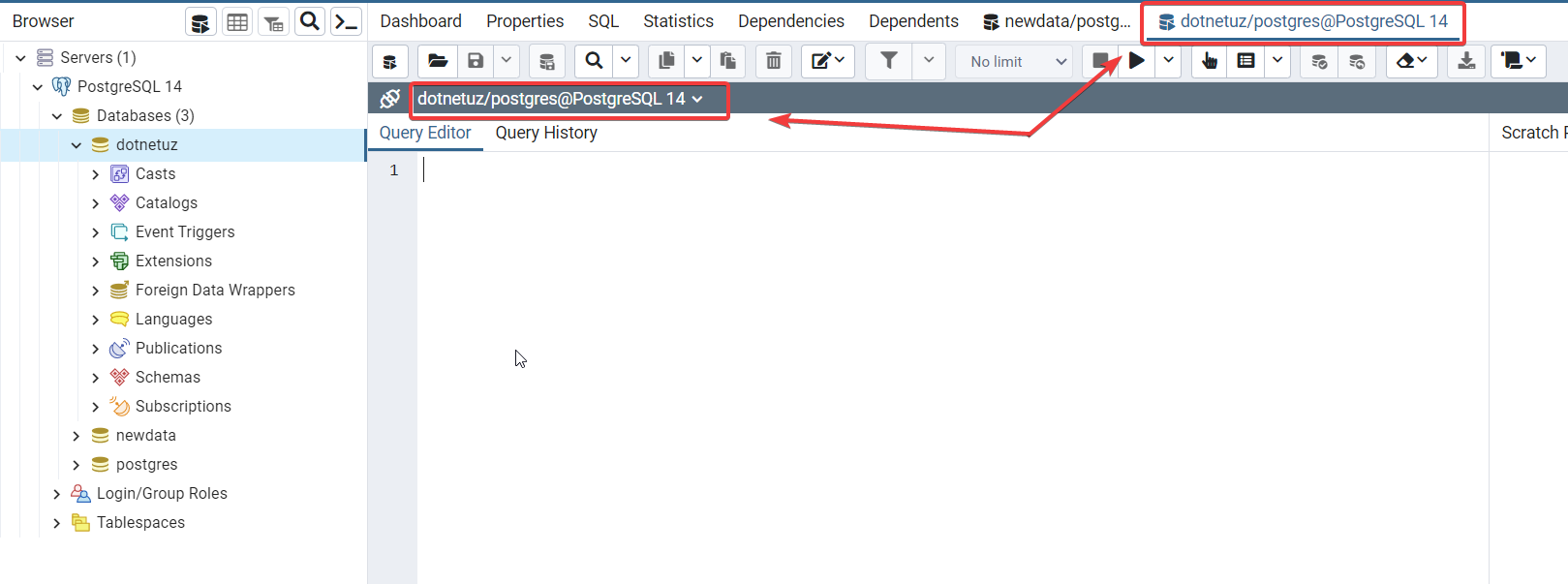 Keling, birinchi pgAdmin orqali bizda mavjud bo'lgan database'ga ulanishni ko'rib chiqamiz: