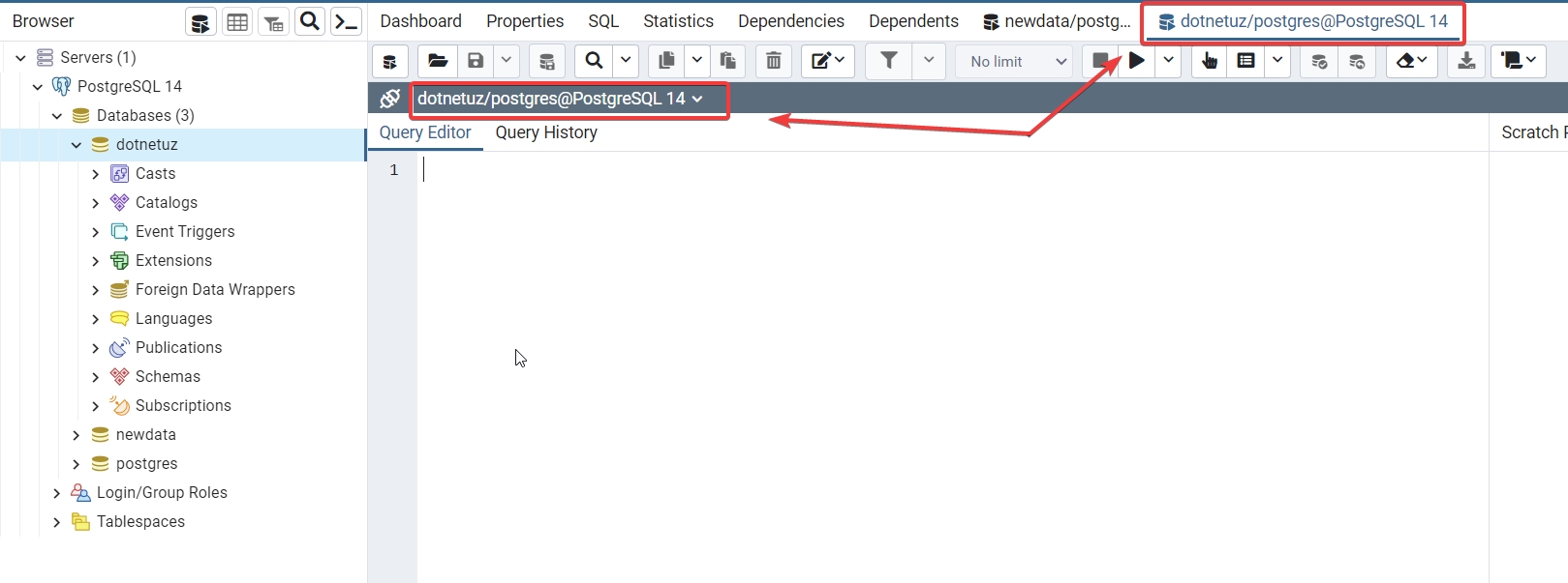 Ulanishingiz bilan sizga yangi oyna paydo bo'ladi va bu yerda siz SQL querylarini yozishingiz mumkin.